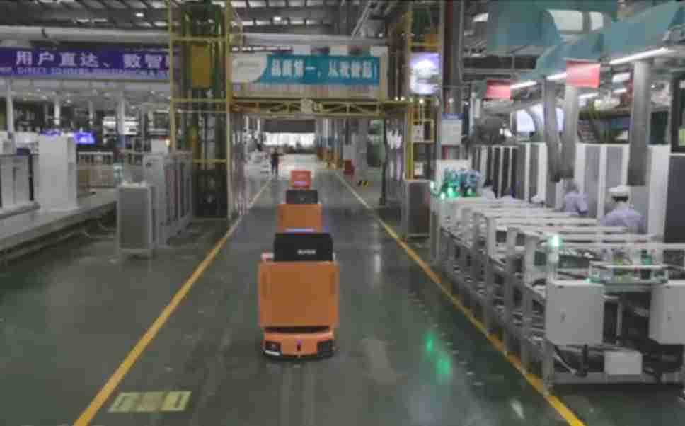 为车载冰箱物流配送打造的智能解决方案,,包含产中物流通过潜伏举升AMR搬运至线边,,产后成品物流智能仓储,,流程包含产中物流智能齐套入库,,,,线边安灯叫料AMR智能配送至线边,,成品入库、、、、出库,,,通过无人堆高车机器人,,,智能仓储管理替代人工作业管理,,,,实现更高存储、、、、更高效率、、、更具柔性化的解决方案。。